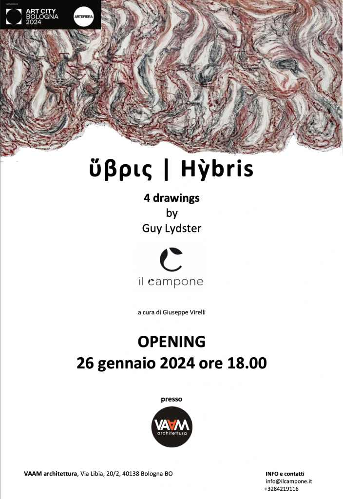 Il progetto hỳbris nasce dalla riflessione dell’artista Guy Lydster sull’Antropocene, ossia sull’attuale epoca geologica in cui per la prima volta nella storia della Terra l’attività umana ha inciso in maniera così radicale da provocare cambiamenti profondi e irreversibili su larga scala.