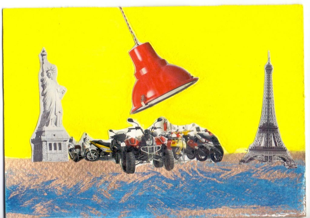101 POPCARDS, opere in formato cartolina. Realizzate con scritte e ritagli di giornali, tempere e pigmenti, raccontano di uomini, donne, città, sorelle, piante, ambienti affollati da strane presenze. Sono le cartoline-collage che Silvia Sperandio invia ai nostri sguardi ‘destinatari’ e noi, per entrare in sintonia, dobbiamo stare al gioco. Un gioco avvincente, tra Fluxus e Dada, che esce dal cilindro di quanto visto, vissuto, metabolizzato, per un ‘saluti e baci’ che racconta di una leggerezza affatto leggera” - scrive la critica d’arte Francesca Agostinelli - “C’è, in queste Popcards, un fluire vitale che qua e là l’autrice va fermando con la casualità che diviene sostanza del suo curioso amore per il mondo”.