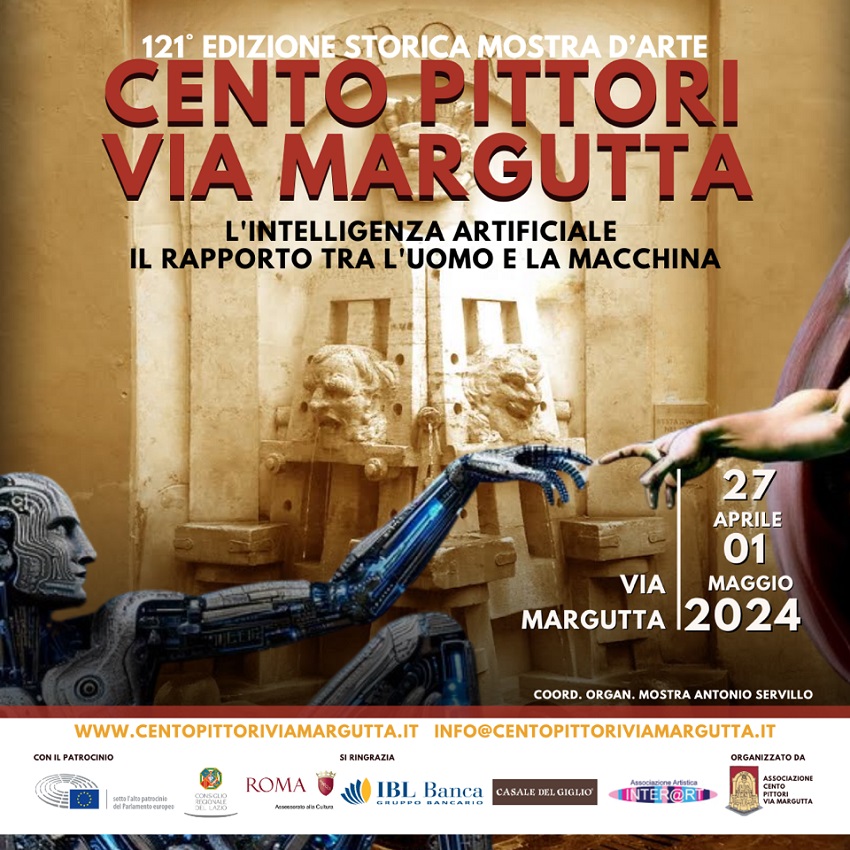 Ritorna la 121° edizione della storica manifestazione d’arte dell’Associazione Cento Pittori Via Margutta, dal 27 aprile al 1° maggio 2024, che quest’anno avrà come tema “Intelligenza artificiale e creatività: il rapporto tra l’uomo e la macchina”.