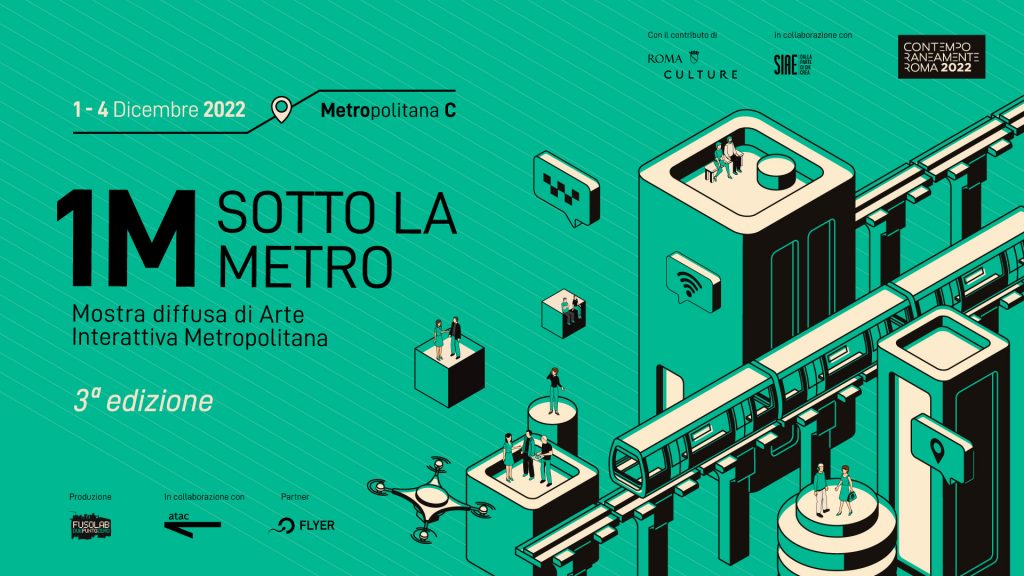 Dal 1° al 4 dicembre 2022 torna 1Metro sotto la metro, la mostra diffusa di arte interattiva metropolitana curata da Arianna Forte e organizzata da Fusolab 2.0 in collaborazione con ATAC e Flyer.