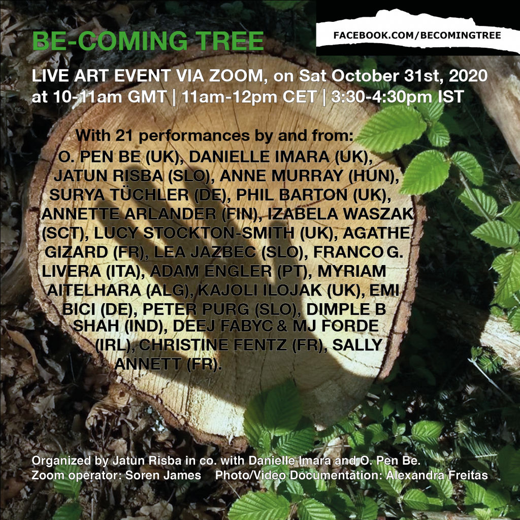 2nd collective ‘Be-coming Tree’ Live Art event via Zoom