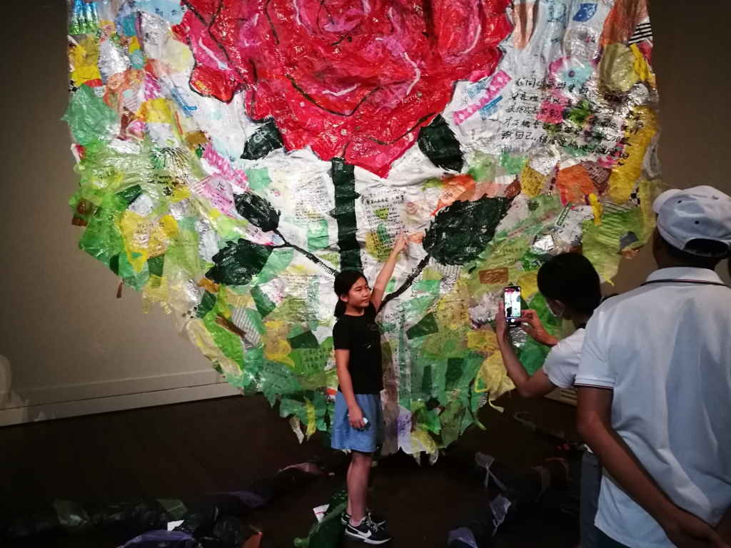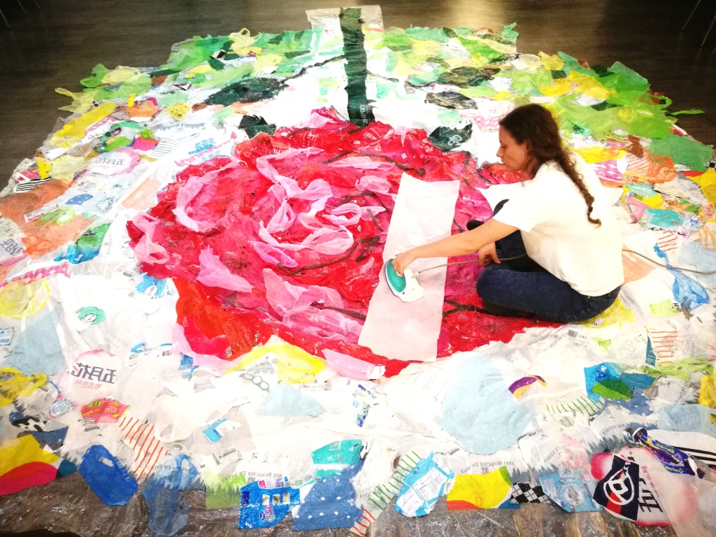 Durante il soggiorno taiwanese RE ha sviluppato il progetto raccogliendo, suddividendo, ritagliando e stirando centinaia di pezzi di plastica da riciclare, donati da cittadini di Taitung di tutte le età.
