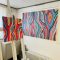 Tra queste, di particolare impatto sono quelle create in collaborazione con lo studio Kromos. Da questa volontà di contaminazione e sperimentazione nasce un dialogo tra i neon e le tele, per creare qualcosa di nuovo, un’opera di design unica nel suo genere. Ogni opera è frutto di un incontro di linee, volumi, colori e luci e grazie alla maestria artigiana dello studio di design si crea una perfetta fusione: le forme dei neon seguono sinuose le linee marcate, le accompagnano in un dialogo senza mai prevalere, fondendo i colori della tela, creando un gioco di rimandi cromatici perfettamente mixati e mescolati dai fasci di luce. La tela si espande nella terza dimensione e diventa scultura, installazione.