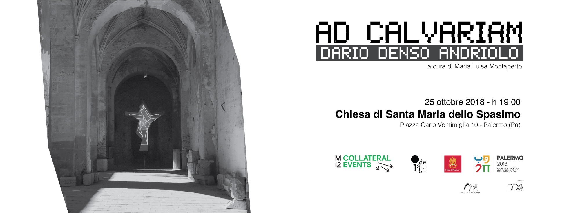 La location è suggestiva. L’opera in esposizione è dirompente. Giovedì 25 ottobre, alle ore 19, alla Chiesa di Santa Maria dello Spasimo di Palermo, Manifesta 12 - Collateral Events ospita la video-scultura “Ad Calvariam” dell’artista palermitano Dario Denso Andriolo. Il tema della croce, radicato nella cultura europea da secoli, con Andriolo giunge al linguaggio della contemporaneità sotto una declinazione estetica nuova e complessa. Diviene installazione, performance, esperienza.