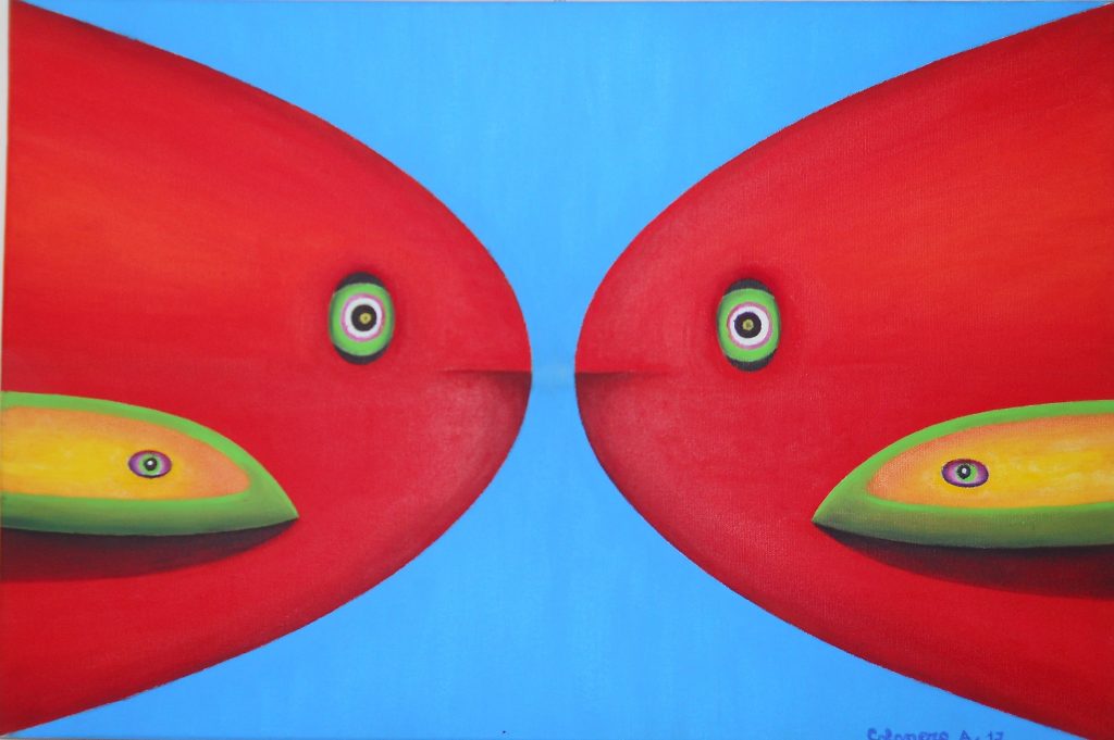 Colanero in quest'opera mette in scena una sorta di “visitazione” di Pontormesca memoria. Il contrasto dei colori primari usati tra soggetti e sfondo, le anime di questi pesci dallo sguardo alieno portano dentro di loro rispettivamente altre piccole anime come in una duplice maternità speculare e perfetta che sintetizza il linguaggio estroso e creativo dell'artista abruzzese.