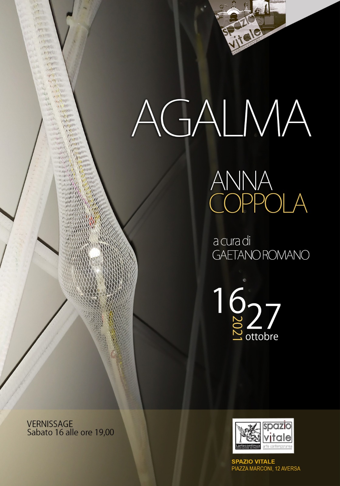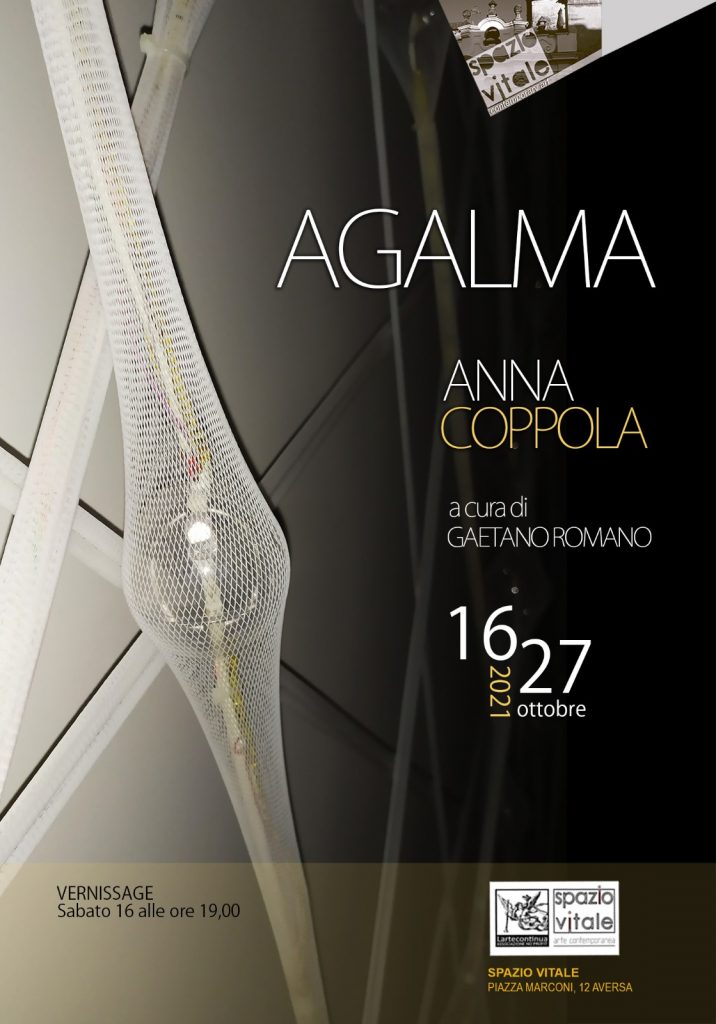Sabato 16 Ottobre, alle ore 18,30, sarà inaugurata al pubblico, allo Spazio Vitale di Aversa (Piazza G. Marconi,12 ), la mostra AGALMA, dell’artista Anna Coppola, curata dal critico d’arte Gaetano Romano, che terrà una relazione sulla sua ricerca.