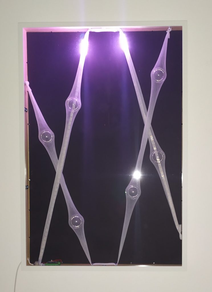 L’artista napoletana, docente in Umbria, con le sue ricerche ed inedite narrazioni, ha inaugurato un filone di attraversamenti fondato sulla rete e le sue connessioni e che, secondo il curatore, trova illustri parentele nel lavoro storicizzato, di Fontana, Kosuth, Dan Flavin.