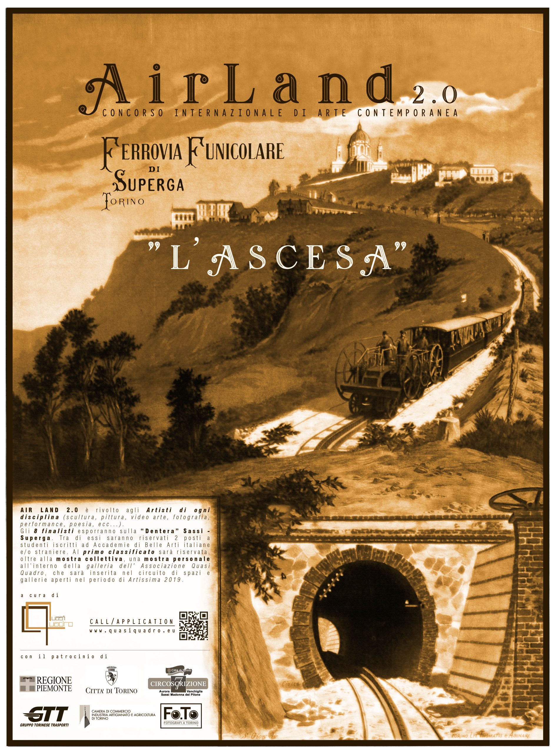 Quasi Quadro presenta la seconda edizione di Air Land che quest'anno vedrà svolgere la sua esposizione finale dal 18 maggio al 16 giugno durante il Festival Fo.To- Fotografi a Torino sulla "Dentera", storica tranvia Sassi Superga, in collaborazione con GTT-Gruppo Torinese Traposti e con il patrocinio della Regione Piemonte, Città di Torino, Circoscrizione 7 e Camera di commercio di Torino.