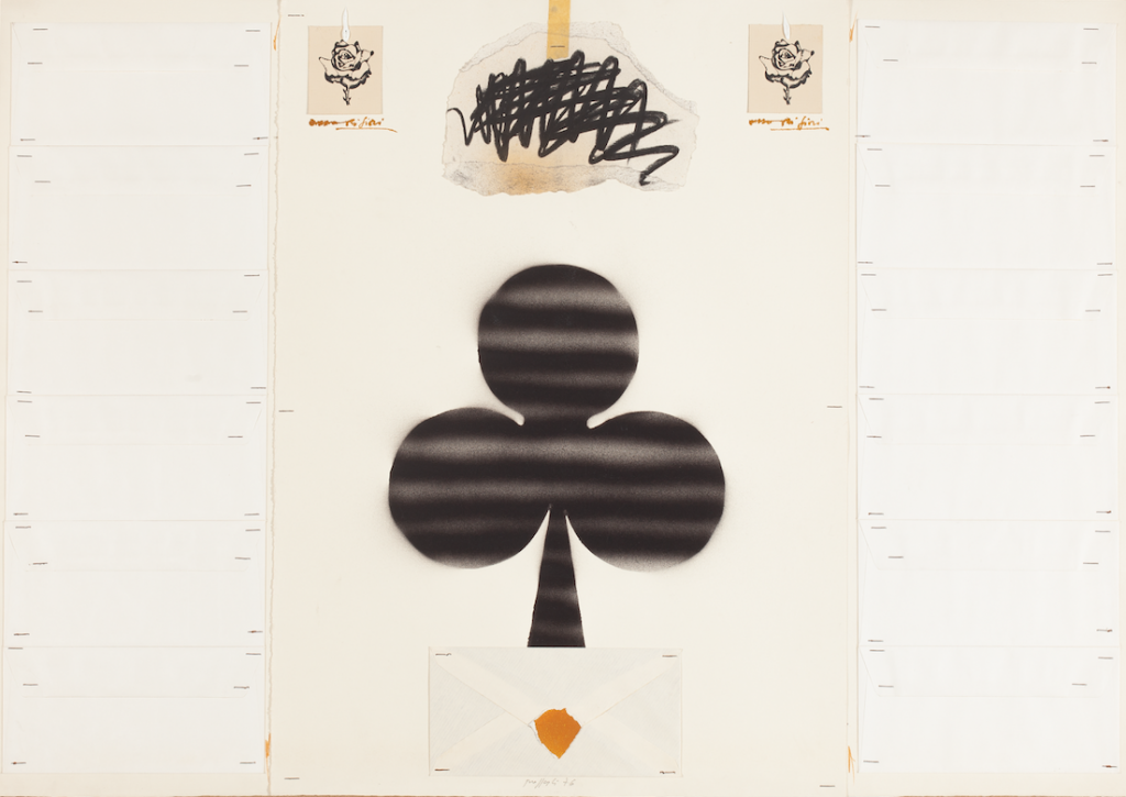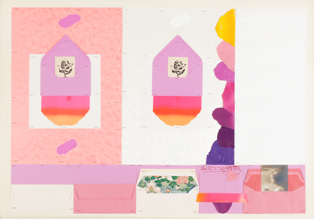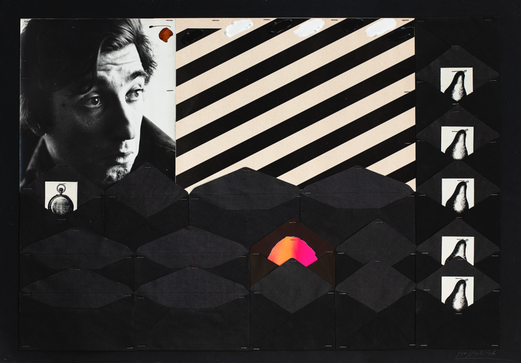 Il percorso espositivo si sviluppa in 3 sale. Si apre con una grande opera su tavola del 1977 prestata gentilmente dall'Archivio Concetto Pozzati. Un plotone di buste in legno, aperte, disposte sull'attenti, si trova in contemplazione di un cielo fatto di fotografie vintage, oggetti e opere nell'opera. Tra immagini create e immagini trovate, nel meglio della tradizione pozzatiana.