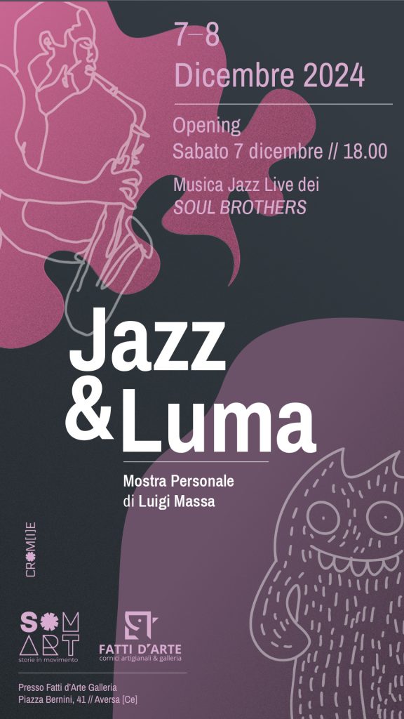 Si allega, con preghiera di diffusione, il comunicato stampa relativo alla mostra di arte contemporanea "Jazz&Luma" dell'artista Luigi Massa presso gli spazi espositivi della Galleria Fatti d'Arte di Aversa in programma dal 7 all'8 dicembre.