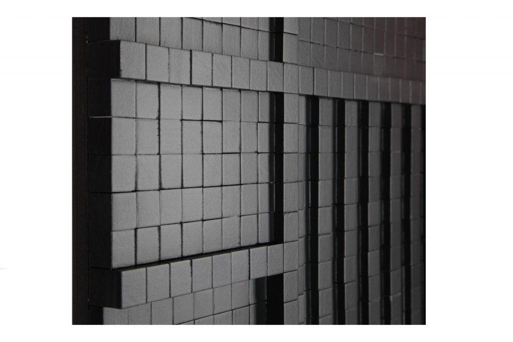 Produce mosaico da parete in bassorilievo. Predilige il legno di toulipier (famiglia delle Magnoliaceae) che lavora e riduce in formato tessera dando vita ad una costruzione simile a scacchiere mobili formate da più strati sovrapposti. In questa sua esposizione presenta anche dei lavori su legno a incisione eseguita a scalpello, collegati da una tessera che rimanda al mosaico.
