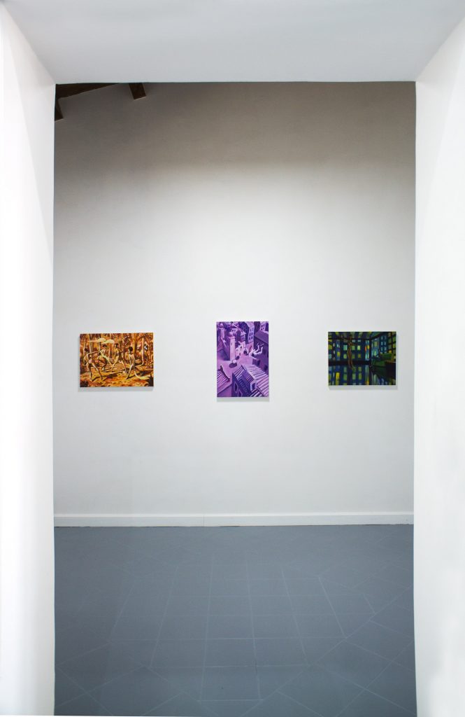 Talvolta si può credere che, in alcune opere, sia presente un elemento onirico, ma l’universo del pittore si dirige più che altro sul versante di una visionarietà controllata in cui libera la sua mano facendola scorrere sui binari di costruzioni figurative che nascondono la loro complessità dietro le sembianze della loro sintesi visiva.