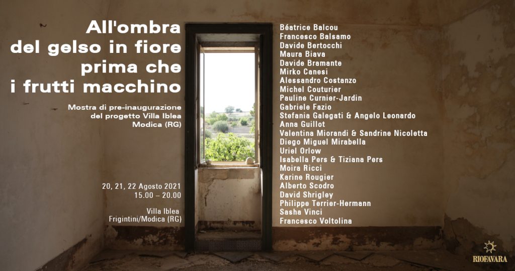 All’Ombra Del Gelso In Fiore Prima Che I Fiori Macchino è il progetto inaugurale di Philippe Terrier-Hermann et Yann Valladon, curato con Rosa Anna Musumeci ed Emmanuel Lambion a Villa Iblea, un centro culturale polivalente che rianimi le pietre del luogo facendone un crocevia per apprendere, trasmettere, condividere ridefinire e costruire nel rispetto della sua identità e nell’apertura alla ricerca e alla sperimentazione internazionale.