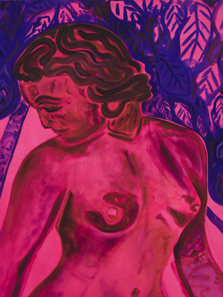 Intitolata "Our Secret Garden" e in programma dall'1 aprile al 13 maggio 2023, la mostra comprende una serie di dipinti e un'opera scultorea raffiguranti figure archetipiche, da sole o in gruppo, in ambienti oscuri pulsanti di colore.
