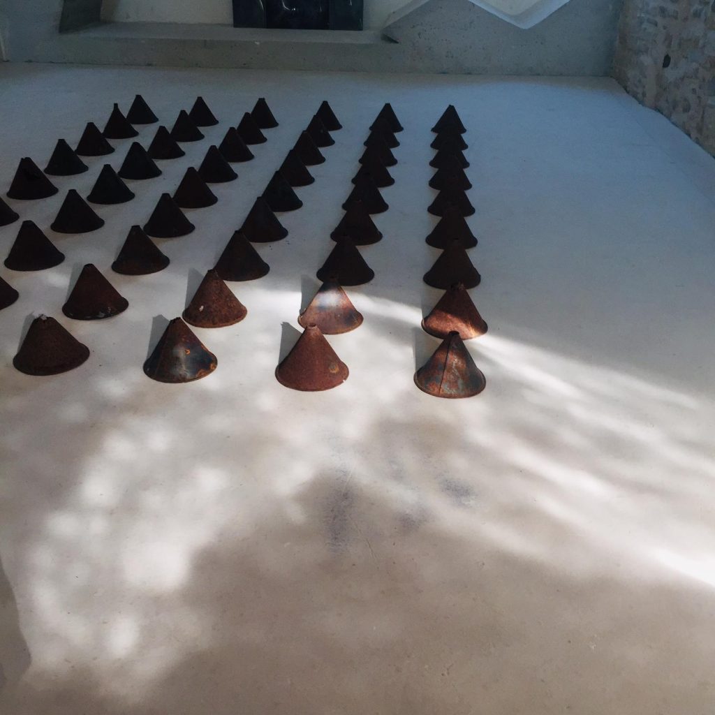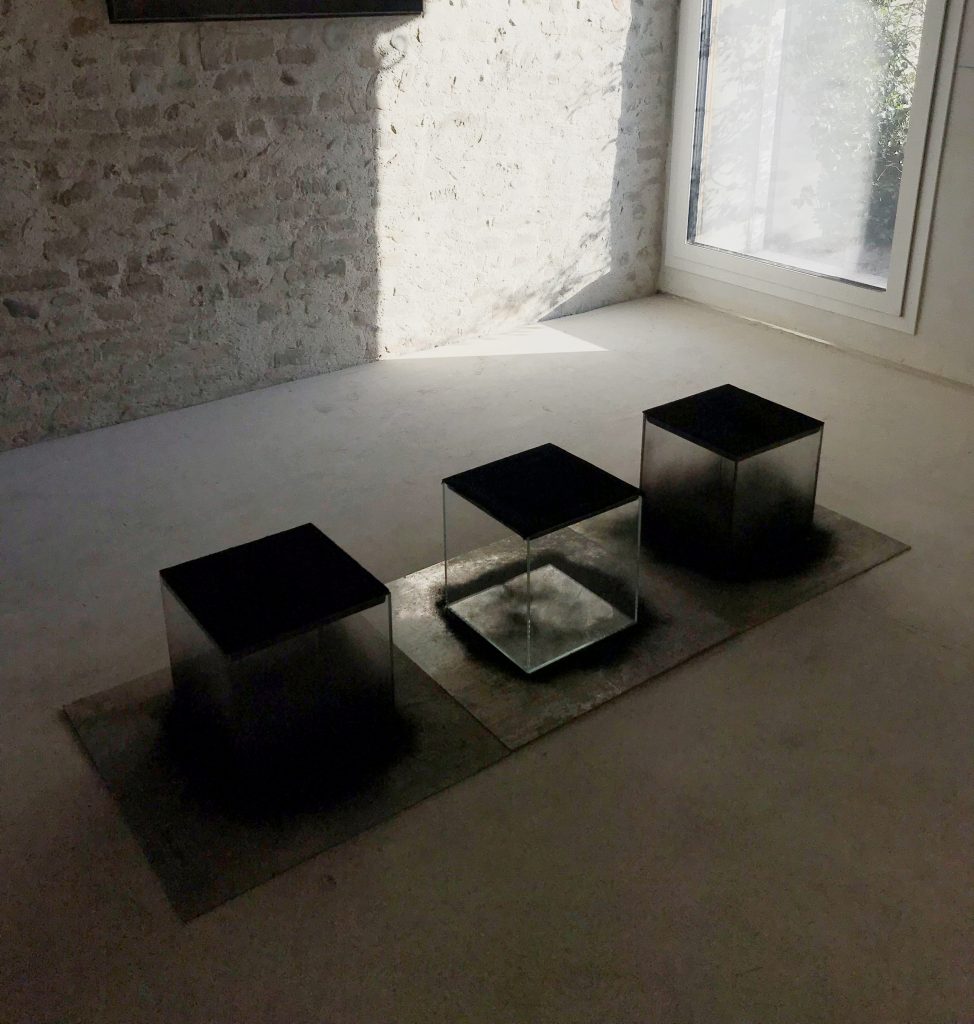 L’allestimento stesso gioca sulla linea sottile che divide l’essere penetrabile dall’essere ermetico. Vi offriamo una mostra sostanziale, fatta di materia: polvere nera, specchi, alluminio, coni, scarti, pittura, plastica, legno, corde. Al tempo stesso una mostra fatta di luce, vuoto e atmosfera che si sviluppa su più piani, al chiuso e all'aperto. Vi invitiamo in un cantiere che consente l’accesso ad un massimo di quattro persone alla volta, che verranno accompagnate su scale di cemento di in una palazzina del centro storico. Un attico, un terrazzo e del vino se verrete di domenica.