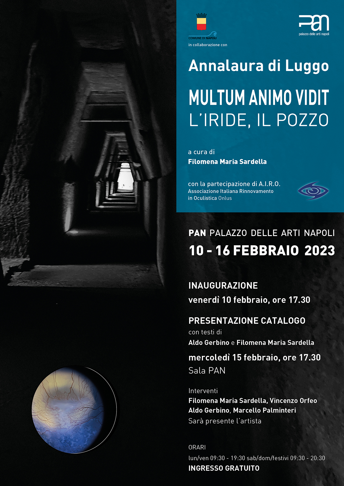 Venerdì 10 febbraio 2023, presso il PAN Palazzo delle Arti Napoli (Via dei Mille, 60) si inaugura la mostra MULTUM ANIMO VIDIT. L’IRIDE, IL POZZO di Annalaura di Luggo, a cura di Filomena Maria Sardella, con un testo in catalogo di Aldo Gerbino.