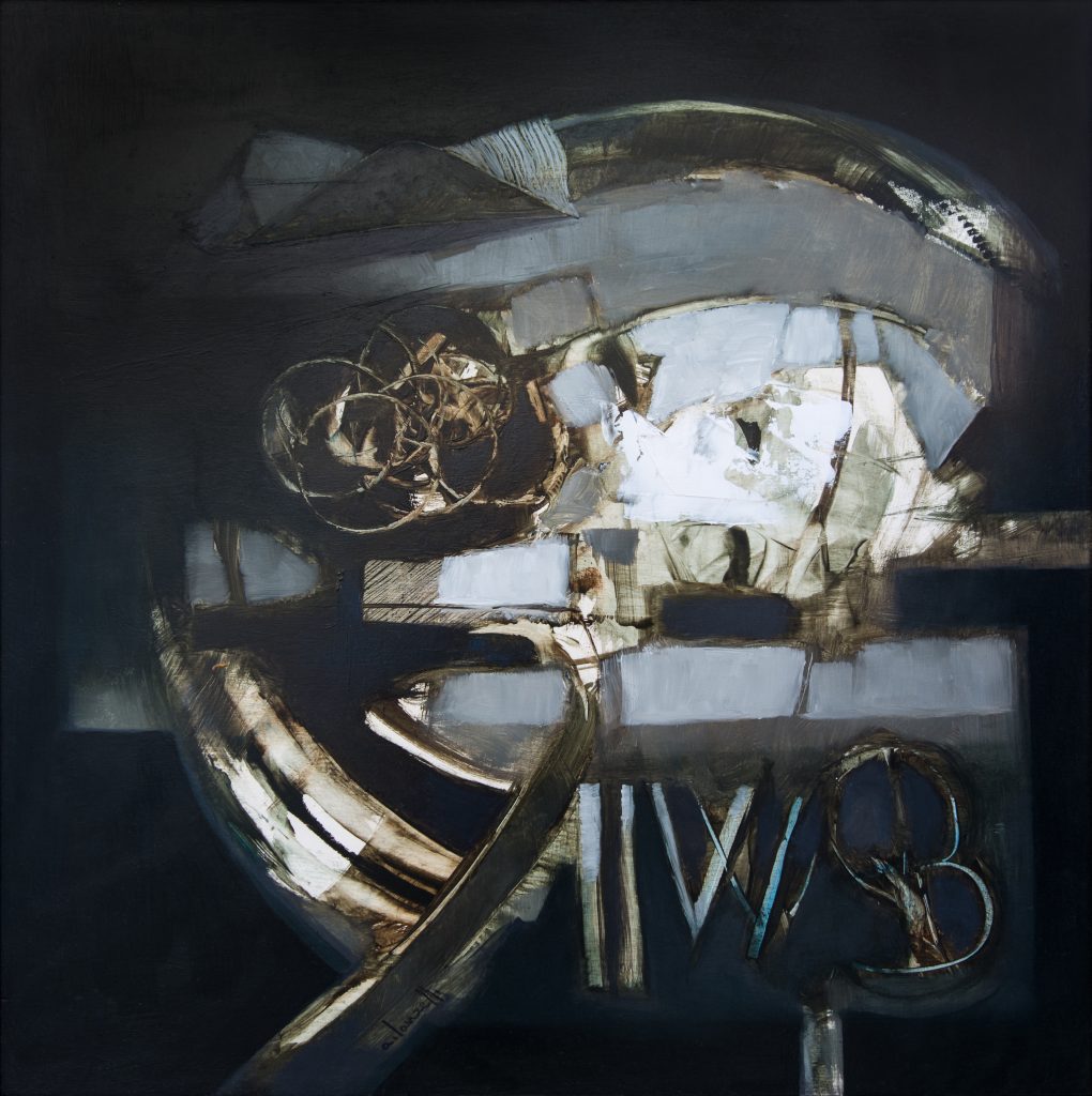 Tensioni tra le forme e i colori, texture, piani sovrapponibili e sfalsati rappresentano un’entità alla ricerca di un equilibrio che ogni elemento ha contribuito a creare spazio; un rapporto spazio/colore che regola dall’interno il sistema dell’opera.