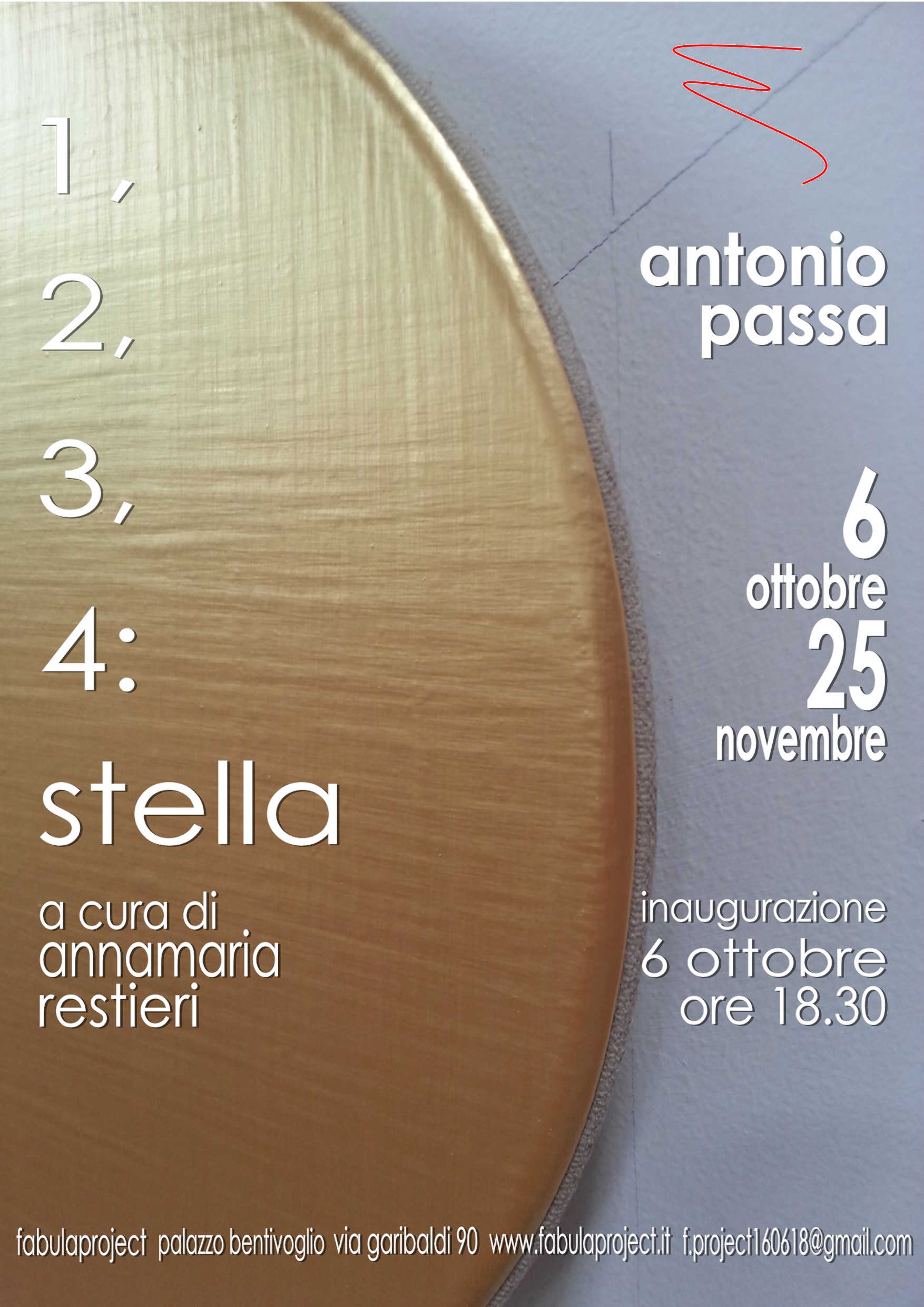Antonio Passa. 1,2,3,4: Stella. Inaugurazione 6 Ottobre Ore 18.30