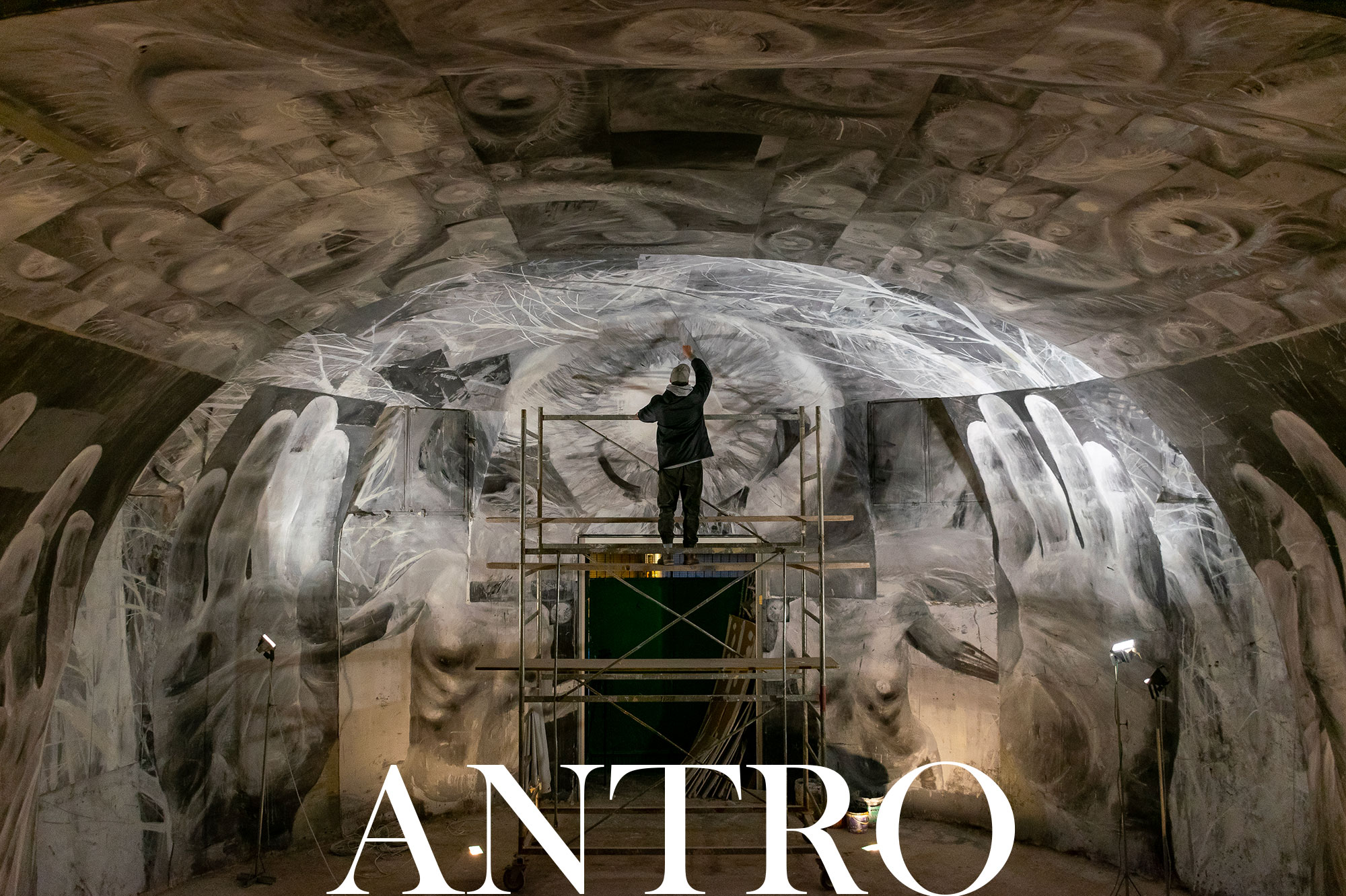 L’ambizioso progetto “Antro” di Bosoletti apre le sue porte al pubblico per rivelare il risultato di un intenso lavoro concettuale e fisico che a lungo ha impegnato l’artista argentino. Il grande dipinto immersivo che ricopre per intero le mura dell’abside della Collegiata in Santa Maria Maggiore a Somma Vesuviana trasporta l’osservatore in una realtà in bilico tra passato e presente, nel mezzo di una contemporanea pittura rupestre.
