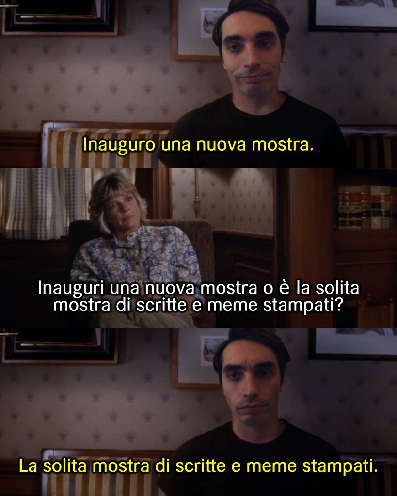 La mostra conclusiva si rivela come un inaspettato dialogo tra le opere della Collezione Palmieri, e gli esiti ironici e dissacranti delle ‘operazioni concettuali’ di Alvigini. Nella fase progettuale, l’artista ha fin da subito constatato una certa affinità tra le opere appartenenti alla collezione, e le sue, scoprendo complicità e similitudini sviluppate più o meno consciamente. Al di là dell’esito finale della residenza, la mostra non è che un tassello di un più ampio progetto che ha visto Alvigini sviluppare tutta una serie di operazioni online. Nato sui social network, l’artista ha deciso di estendere il concetto stesso di ‘residenza’ anche sulle piattaforme digitali, innescando un’ampia produzione immateriale di elementi fatta di slogan, meme, messaggi, immagini e video. L’esposizione si compone, dunque, non solo di opere effettivamente prodotte, ma anche da tutti i materiali elaborati durante gli incontri, trascritti e raccolti in una pubblicazione di prossima uscita e delle varie attività promozionali come i post pubblicati sulla pagina Make Italian Art Great Again nel periodo di residenza.