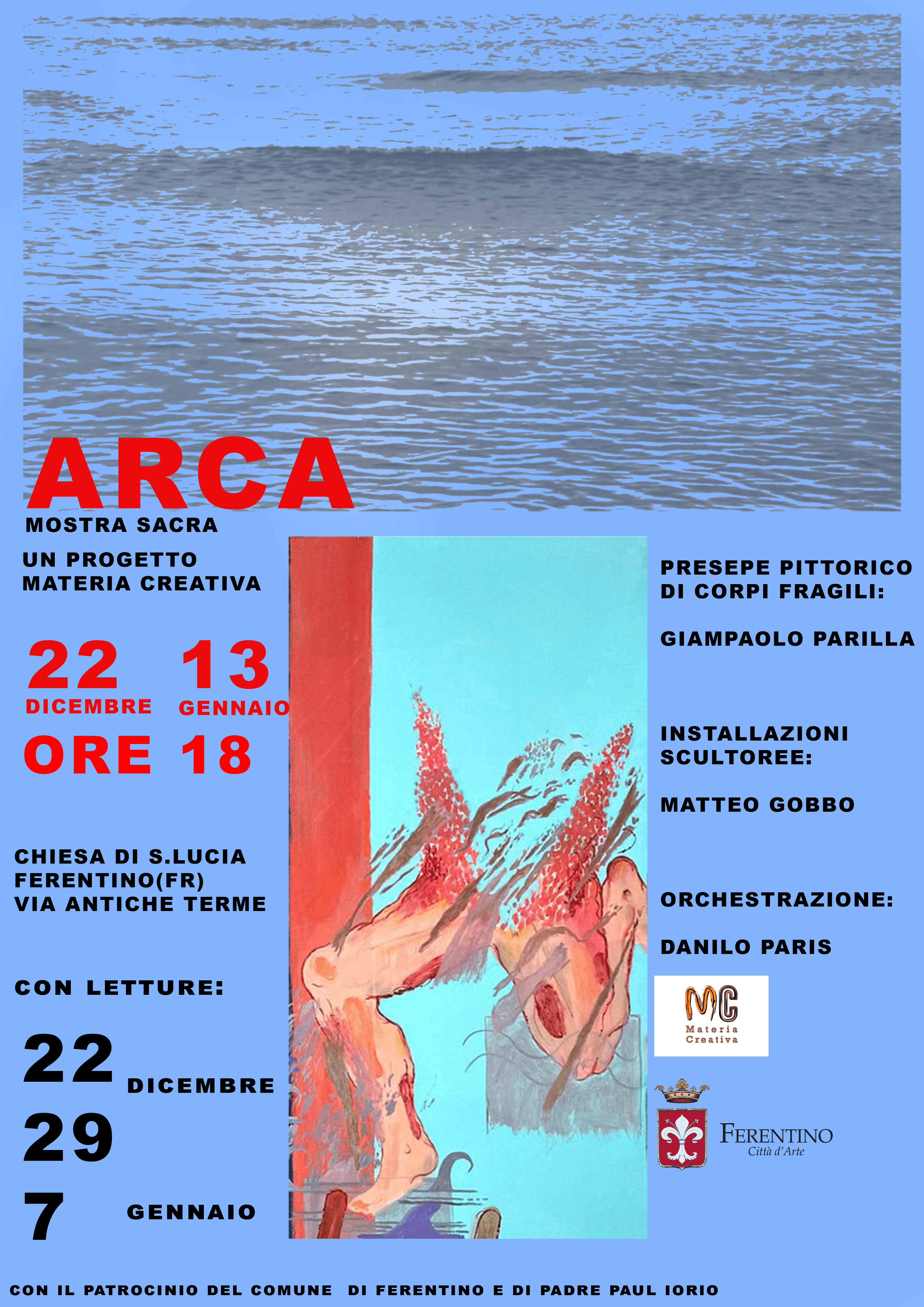 Si può dire che Gobbo allestisce l'arca e Parilla dispone i corpi fragili in esodo nella stessa.