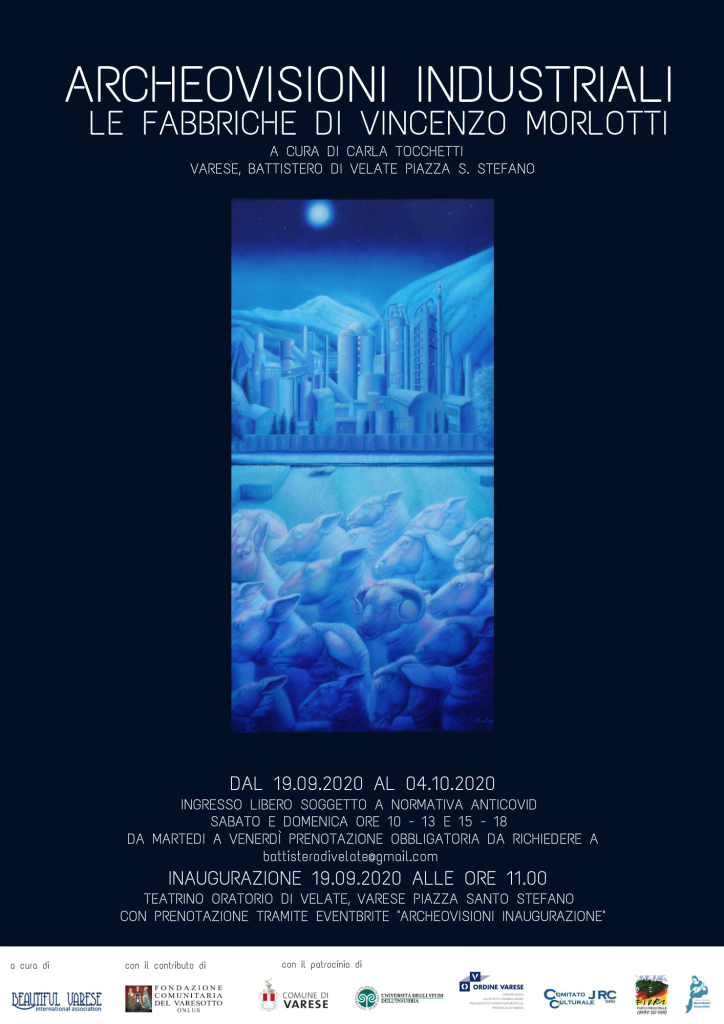 “Archeovisioni Industriali. Le fabbriche di Vincenzo Morlotti” al Battistero di Velate, Oratorio tardoseicentesco nel borgo più antico di Varese, inaugura una serie di esposizioni riunite in un palinsesto dal titolo “Immaginari Arte e Scienza” che rientra fra i patrocinati nell’ambito del Bando Cultura 2020 del Comune di Varese. Il progetto si fonda sulla riflessione che “l’Arte è in grado di accompagnarci alla conoscenza delle nuove istanze, soprattutto scientifiche e tecnologiche, dalle quali dipende il nostro stesso futuro”, dice la curatrice della mostra. La sua realizzazione è stata resa possibile dall’organizzazione di Beautiful Varese International Association con il contributo della Fondazione Comunitaria del Varesotto, e dal patrocinio della Comunità MAMI Maria Madre Immacolata, dell’Università degli Studi dell’Insubria in collaborazione con il Centro di Ricerca sulla Storia dell’Arte Contemporanea dello stesso Ateneo, dell’Ordine degli Architetti della Provincia di Varese, del Comitato Culturale JRC European Joint Research Center Ispra; inoltre l’esposizione partecipa al progetto InsubriParks dal Parco Regionale del Campo dei Fiori.