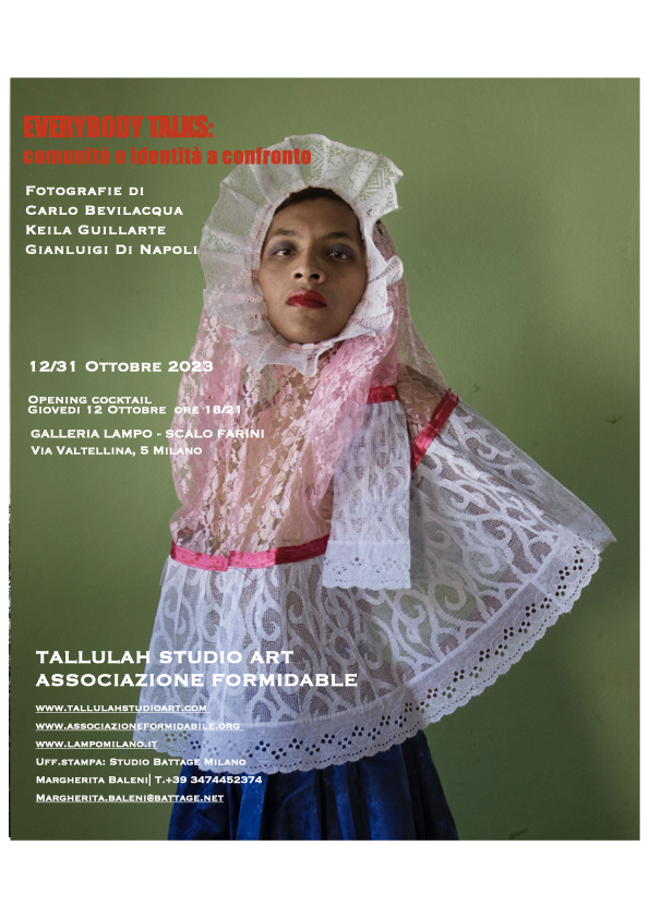 Una selezione dei lavori del fotografo Carlo Bevilacqua, da Into The Silence, Utopia, Queer Divine e The Irish Walking People, saranno in mostra a Milano, insieme a quelli di Keila Guilarte e Gianluigi Di Napoli, da Giovedì 12 a Lunedì 30 Ottobre, alla Galleria Lampo Scalo Farini, di via Valtellina 5 nell’ambito del progetto espositivo EVERYBODY TALKS: COMUNITÀ E IDENTITÀ A CONFRONTO curato da Patrizia Madau di Tallullah StudioArt, in collaborazione con Associazione Formidabile,