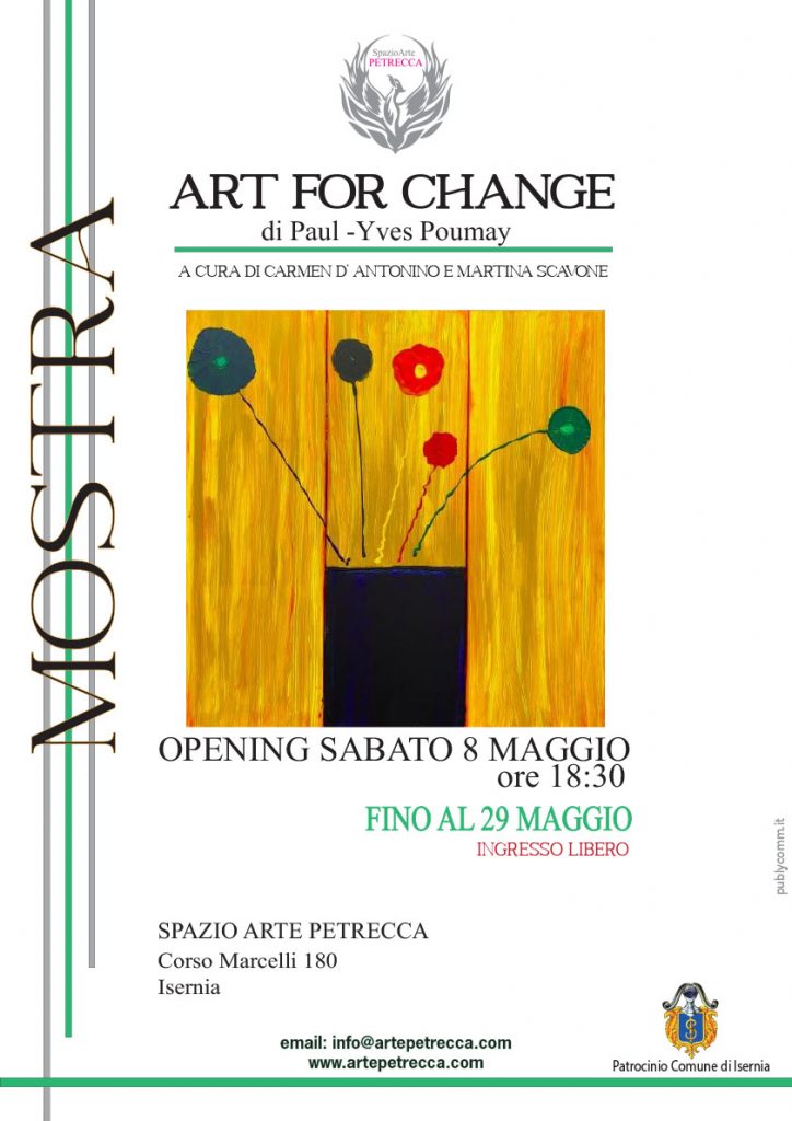 Art for change è la personale d’arte contemporanea dell’artista belga Paul-Yves Poumay ospitata nella galleria Spazio Arte Petrecca a cura di Carmen D’Antonino e Martina Scavone, patrocinata dal Comune di Isernia. Un ringraziamento particolare va ad Anna Maria Griseri, per il prezioso supporto ed il contributo scientifico.