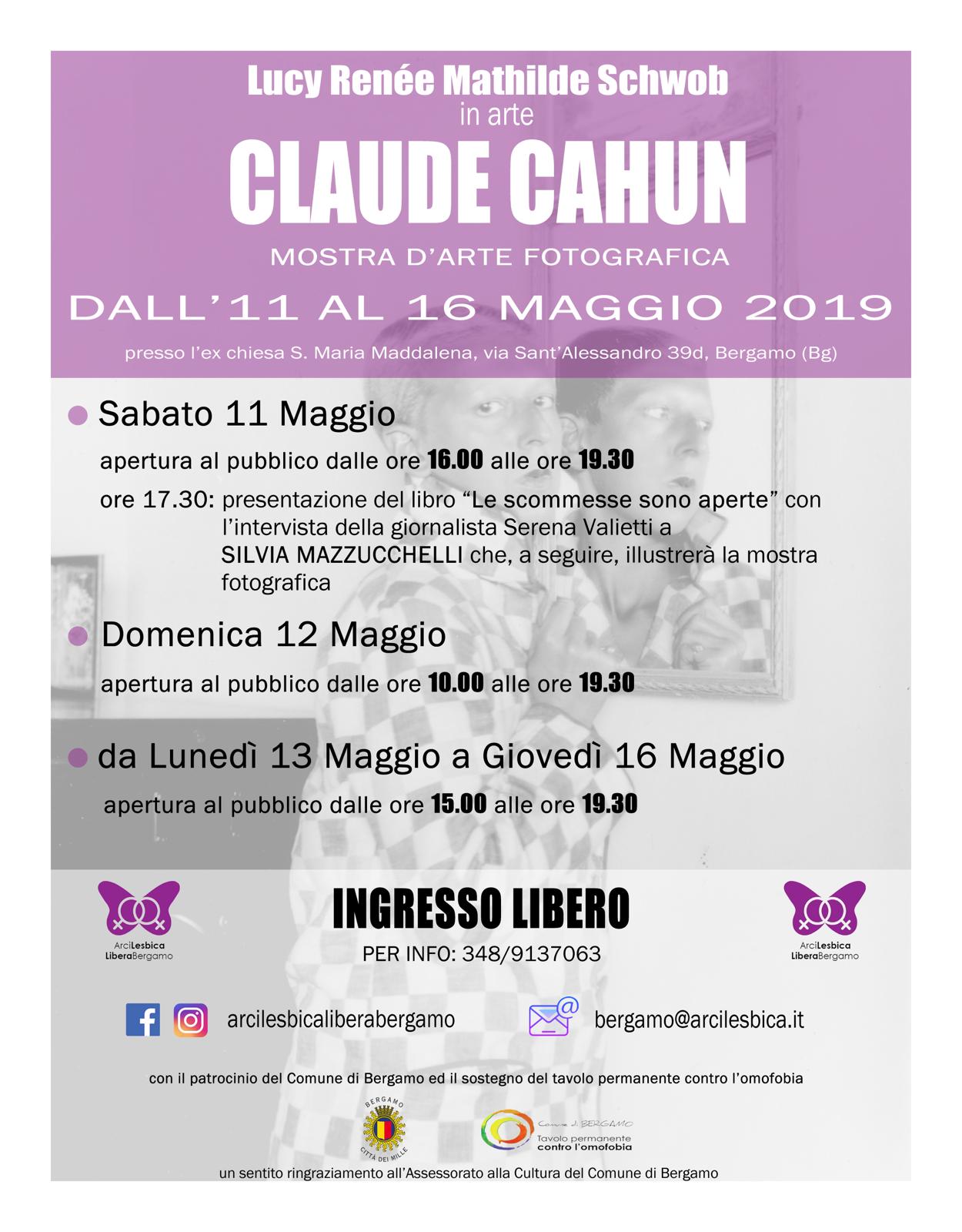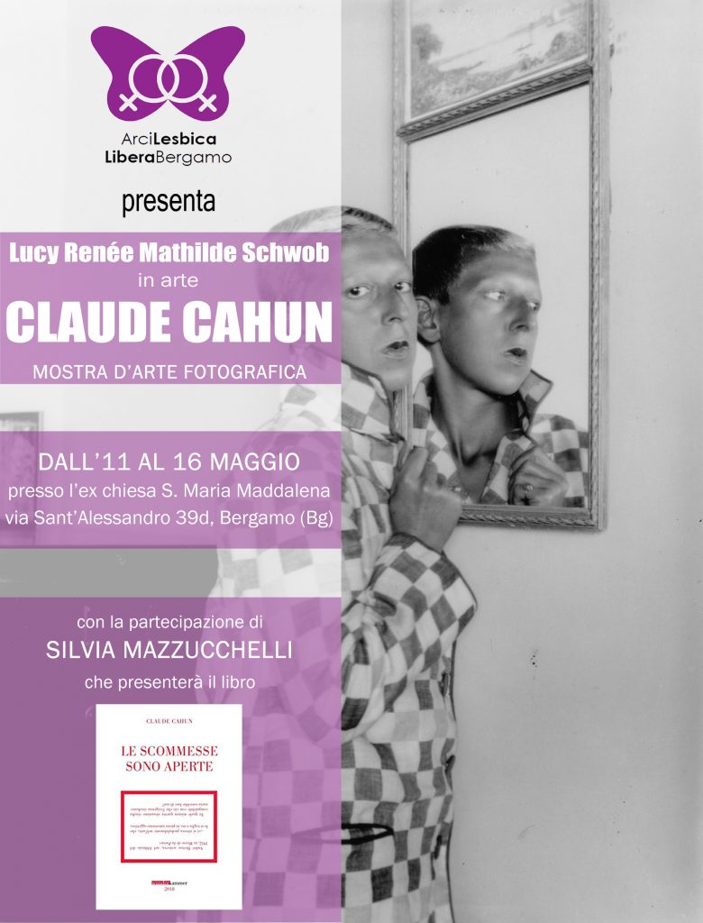 Arcilesbica Libera Bergamo è lieta di presentare la mostra retrospettiva del lavoro della fotografa Claude Cahun, con patrocinio del Comune di Bergamo, e in particolare dell’Assessorato alla Cultura presieduto da Nadia Ghisalberti, e il sostegno del Tavolo Permanente Contro l’Omofobia.