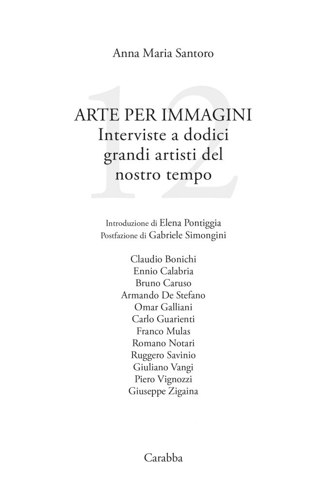 Il libro “Arte per immagini. Interviste a dodici grandi artisti del nostro tempo”, parte della collana “Universale Carabba. Uomo e cultura”, è disponibile in libreria (ISBN: 978-88-6344-610-4), su tutte le piattaforme online e sul sito web dell’editore: https://editricecarabba.it/.