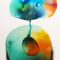 Gli spazi liquidi sono forme più o meno astratte, che rappresentano il bisogno di spazio nella mente e nel corpo. E’ una liberazione dai pensieri e dalla forma necessariamente riconoscibile, tanto più urgente per un’artista che ha lavorato a lungo sul figurativo. Gli elementi di questi spazi liquindi comunicano tra loro, come universi in connessione, uniti da ponti grafici che li rimettono in relazione travasando gli uni negli altri.