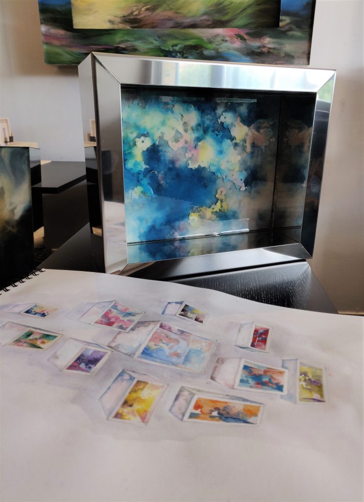 Marjan Fahimi si immette in questa linea di profondo rinnovamento dell’arte contemporaneo persa portando in dote il concetto di sintesi tra l’essere astratto e il raccontare figurativo in uno dei tanti supporti dove vivono e si muovono le sue opere. L’artista è riuscita ad arrivare al complicato sunto di un doppio racconto tra astratto e figurativo, tra il disegno in apparenza veloce di idrometeore e le emozioni che queste masse atmosferiche trasmettono all’intelletto dell’artista. Nuvole animate di forme evolute attraverso un’uso sapiente della materia, talvolta accentuata e tal volta diluita, che parlano di fisicità tangibile unita ad una multiforme dimensione spirituale.