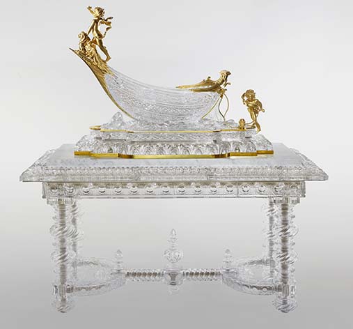 Saranno in mostra a Shanghai alcune tra le creazioni più celebri e celebrate di Baccarat, tra queste: Il Candelabro dello Zar, così chiamato in onore dello Zar Nicola II, che lo ammirò in occasione dell'Esposizione universale di Parigi nel 1878 nello splendore delle sue 79 candele, 3,85 metri di altezza e 3.320 pezzi di cristallo, per poi ordinarne una versione elettrica per i suoi palazzi di San Pietroburgo, le prime lampade a corrente di Baccarat; Il Tavolo e la Barca, emblema della Città di Parigi, creato per la Fiera mondiale del 1889 su modello dello scultore Charles-Vital Cornu, un imponente complesso di 750 chili di cristallo per oltre 3700 ore di lavoro degli artigiani Baccarat; il Vascello del deserto, un bruciatore di profumi a forma di dromedario di chiara ispirazione orientale, emblematico della storia di Baccarat e capolavoro di cristallo, arte e perizia, evocativo della via della seta con il suo carico di oro, mirra, sandalo, cannella e altre spezie; Il Vaso Papavero (riportato sulla locandina della mostra) creato da Georges Dunaime per l'Esposizione internazionale di arti decorative e industriali di Parigi del 1925: simbolo della vita, lo splendore arrotondato della forma del bocciolo si apre nella piena fioritura del motivo stilizzato sul fondo del vaso. Un pezzo rappresentativo dell’Art Déco che rende anche omaggio al colore simbolo della Maison, la cui ricetta segreta è stata ben custodita dal 1839 fino ad oggi, sebbene siano noti gli ingredienti che includono, tra gli altri, la polvere d'oro a 24 carati. Jets d’eau, il monumentale lampadario creato da Baccarat e Georges Chévalier sul tema ufficiale dell’Esposizione Internazionale delle Arti Moderne e Decorative del 1925, l'acqua: una cascata di cristallo di oltre 7000 pezzi tra perle sfaccettate e pendenti.