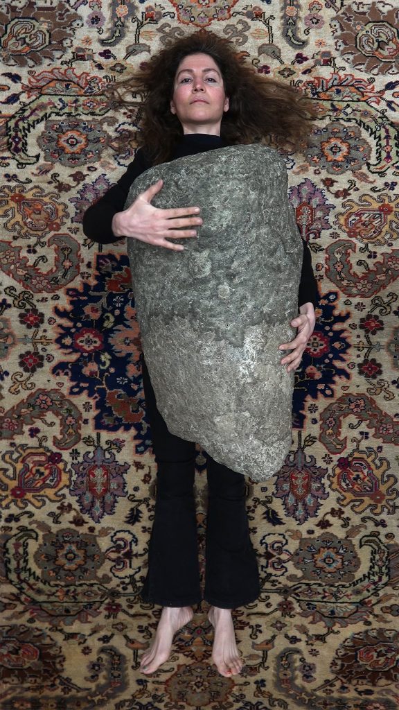 La mostra si pone in continuità con la ricerca dell’artista sul peso dei ricordi, simbolicamente rappresentati da pietre. Le pietre sono realizzate dall’artista in cartapesta, utilizzando fogli di quotidiani contenenti inquietanti notizie di cronaca.