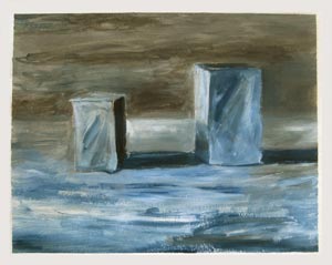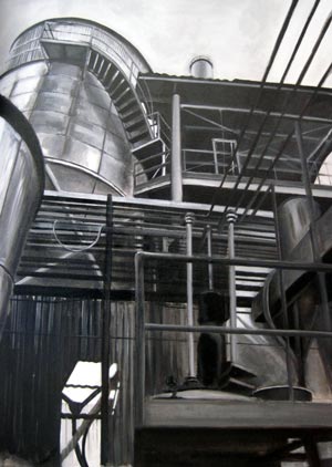 I BARBACANI sono opere che hanno un carattere tra l’informale e il simbolico; la tecnica usata è l’acrilico o l’olio su tela, e hanno per tema delle visioni industriali e soggetti ispirati a laboratori chimici. I freddi cromatismi vengono contaminati da architetture industriali.