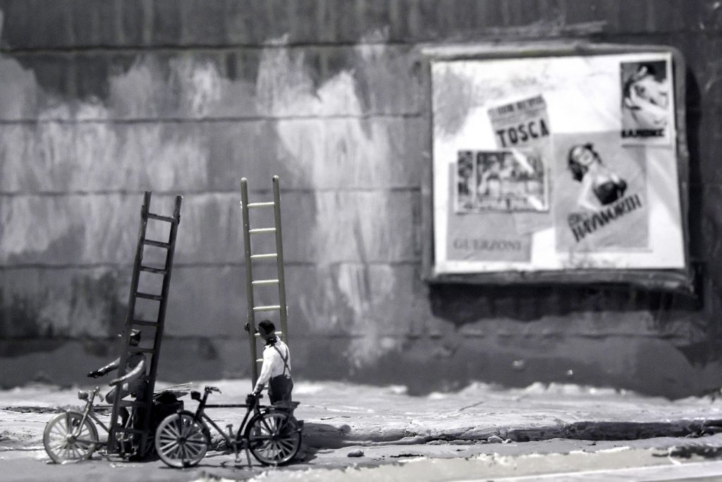 La mostra comprende trentacinque immagini, suddivise in sei progetti differenti, che restituiscono una ricerca complessa: Delle Donne ricostruisce artigianalmente le scene che vuole immortalare, allestisce piccole scenografie, modellini in scala che dovranno essere fotografati. In questo modo lo scatto è solo uno dei passaggi necessari al risultato finale, un passaggio necessario ma non sufficiente. Alcuni delle scenografie, utilizzate nei progetti, accompagnano la mostra, in maniera da rendere evidente al pubblico i vari stadi di lavorazione.