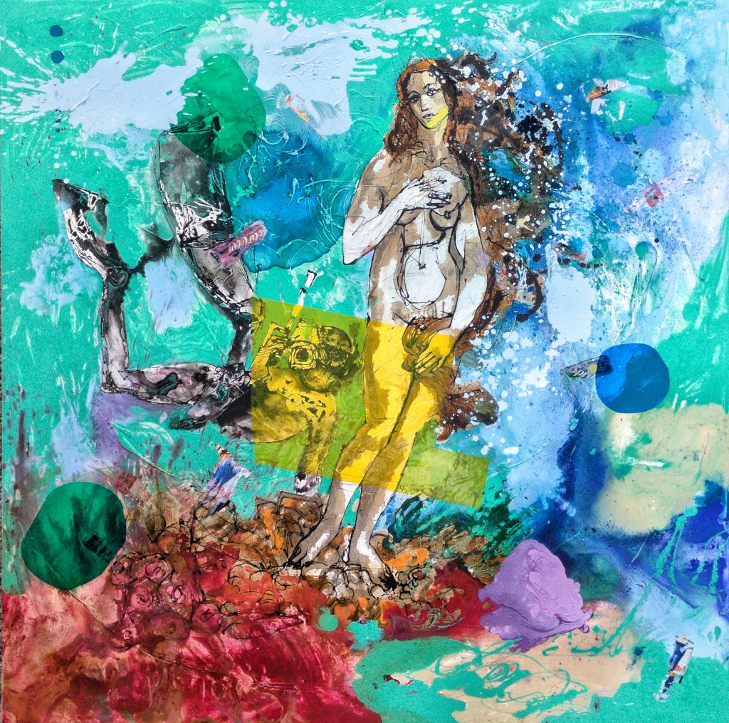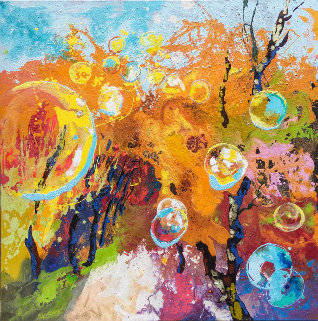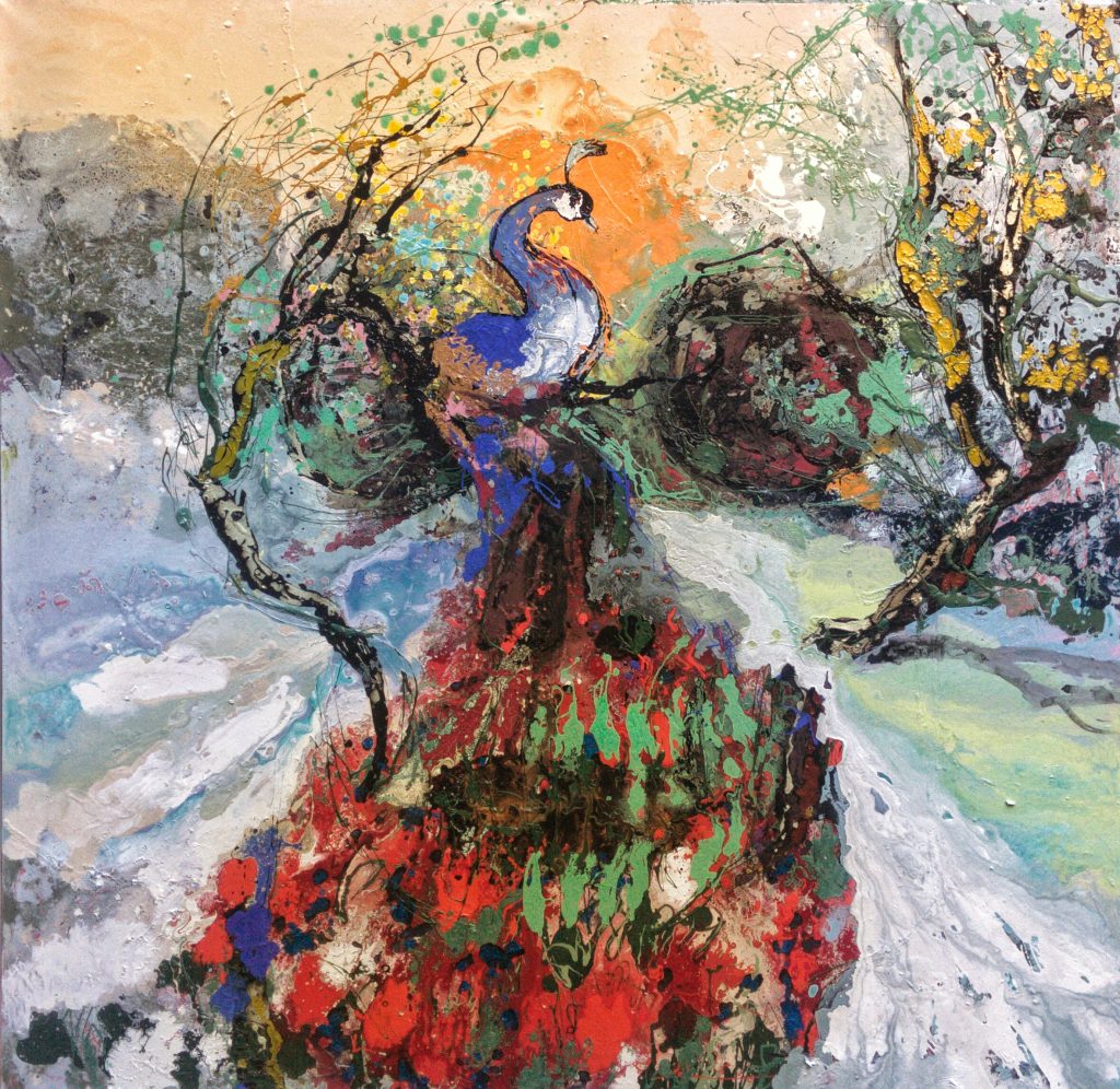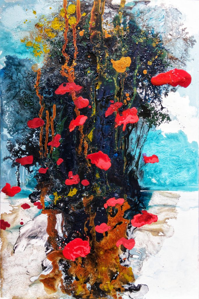 La terra promessa è ciò che l’artista vorrebbe mettere in evidenza percorrendo perennemente durante il suo percorso artistico con le sue vedute immaginarie di scorci naturalistici non contaminati, ma ad un passo dal esserlo… La plastica non ha risparmiato nemmeno le zone più remote del pianeta, quelle che fino a oggi sono state ritenute incontaminate, la superficie occupata dai ghiacciai è andata drasticamente riducendosi a causa del riscaldamento globale. Una manifestazione quasì pubblicitaria per chi osserva le sue opere eseguite con la tecnica del “dripping”.