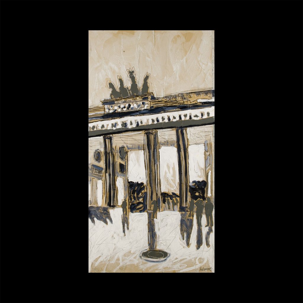 Walter espone a SPAZIO SOLIDO una selezione della sua visione su Berlino, dove ha vissuto per molti anni, osservando la città che offre, purtroppo, anche barriere architettoniche antiuomo: risponde con la pittura forte, coraggiosa, romantica, attenta al passato e presente al futuro. Walter dipinge e si forma possibile la speranza, un perdono per il passato di guerra, ed il futuro che migliora il vivere di una città.