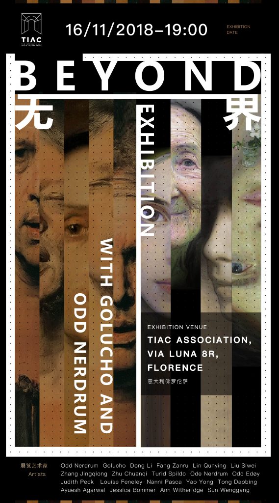 The International Arts and Culture Group (TIAC) è lieta di invitarvi all’inaugurazione della mostra dal titolo BEYOND che segna la fine della seconda edizione dei Master Workshop artistici ,organizzati da TIAC con Maestri Golucho & Odd Nerdrum, e che avrà luogo venerdì 16 novembre alle 19:00 presso la sede di TIAC di Via Luna 8R a Firenze. Alla mostra gli artisti partecipanti esibiranno l’opera realizzata durante il workshop e un’opera realizzata in precedenza.