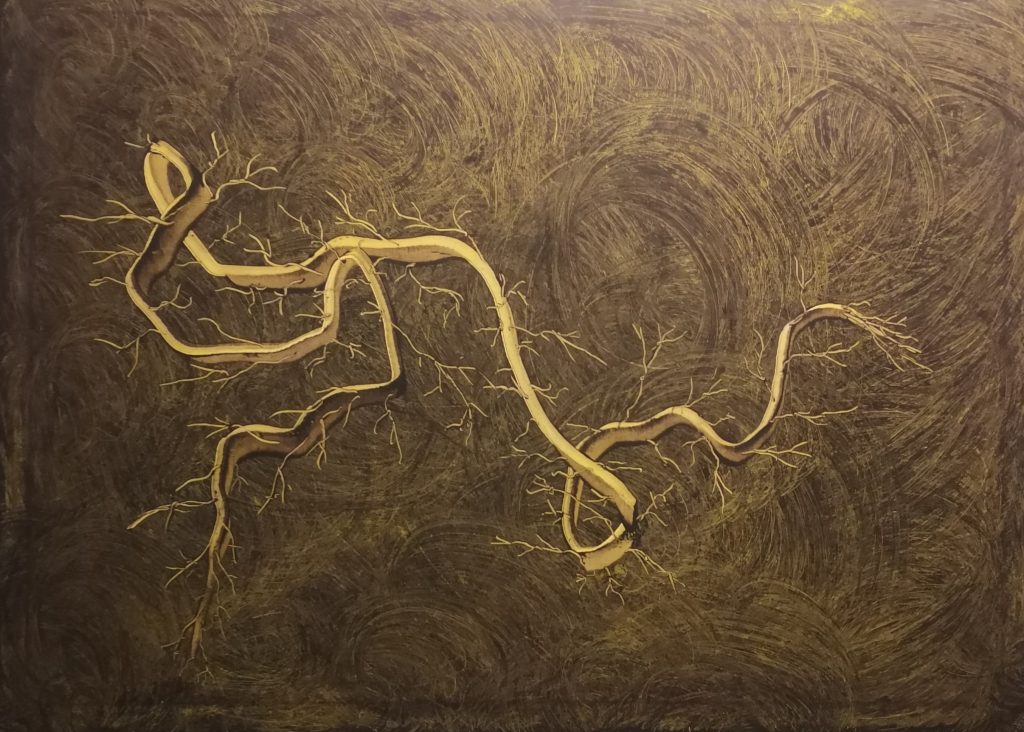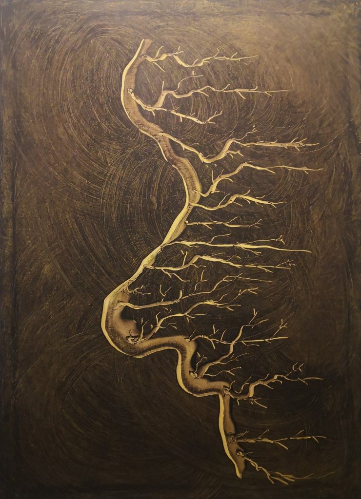 Tra le serie esposte, spicca quella sugli Hibakujumoku , gli alberi sopravvissuti alle bombe atomiche di Hiroshima e Nagasaki. Giacomucci ne rappresenta la resistenza con un'installazione pittorica in cui il nero profondo del fondo contrasta con la luce della vita che riaffiora. Un'altra serie è dedicata al bambù , pianta simbolo di adattabilità, raffigurata in un processo pittorico astratto che ne restituisce la vibrazione e la memoria visiva.