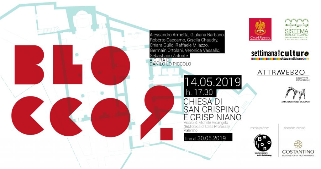 Si inaugura il 14 maggio alle ore 17.30, presso la Chiesa di San Crispino e Crispiniano a Palermo, il group show BLOCCO| 9, composto da nove artisti emergenti tra i quali: Alessandro Armetta, Giuliana Barbano, Roberto Caccamo, Gisella Chaudry, Chiara Gullo, Raffaele Milazzo, Germain Ortolani, Veronica Vassallo, Sebastiano Zafonte.