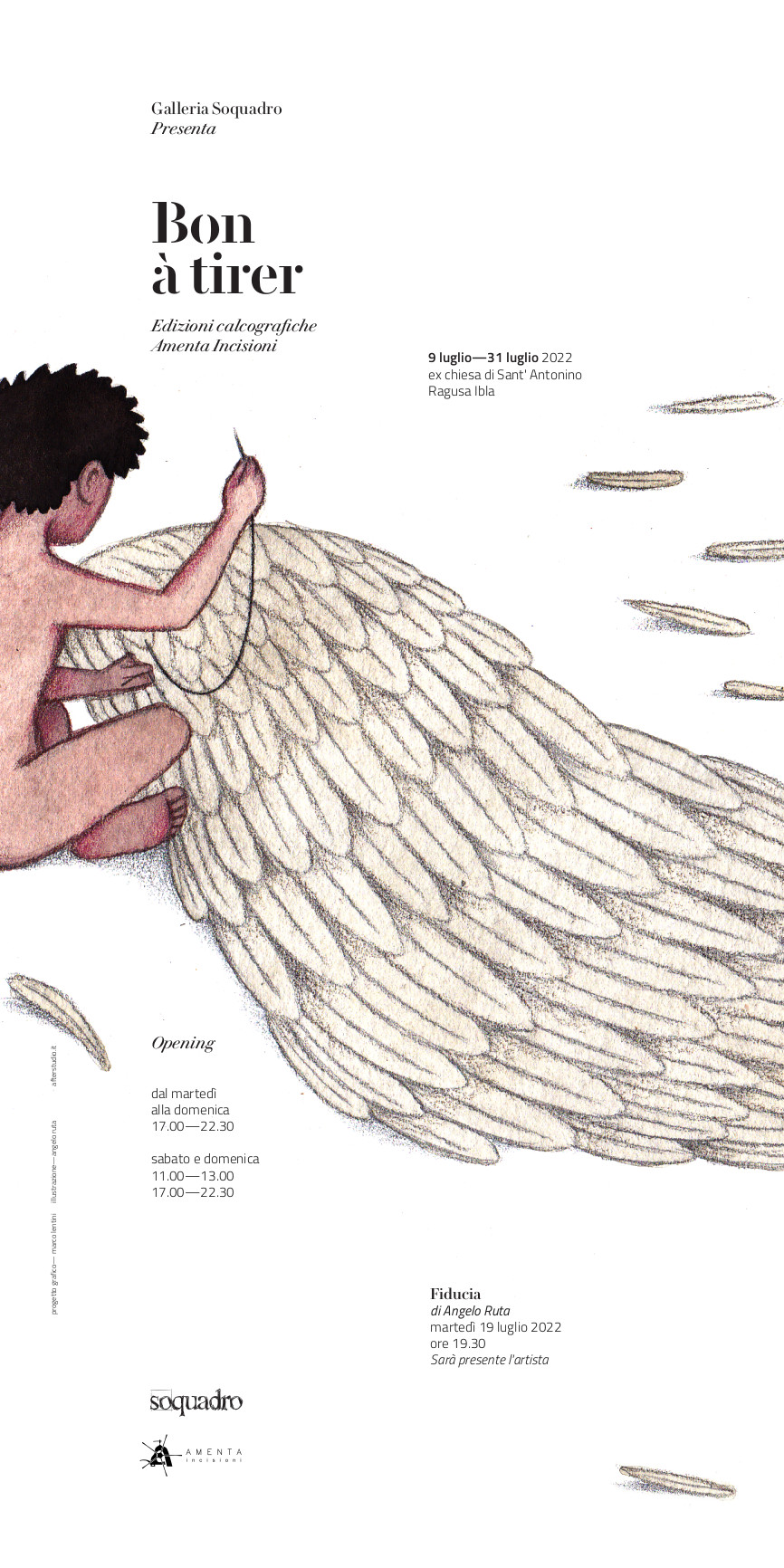 Ragusa Ibla - Galleria Soquadro e Amenta Incisioni hanno il piacere di comunicare che saranno presenti presso l'ex chiesa di S. Antonino a Ragusa Ibla, dal 9 al 31 Luglio 2022, con la selezione di edizioni calcografiche Bon à Tirer.