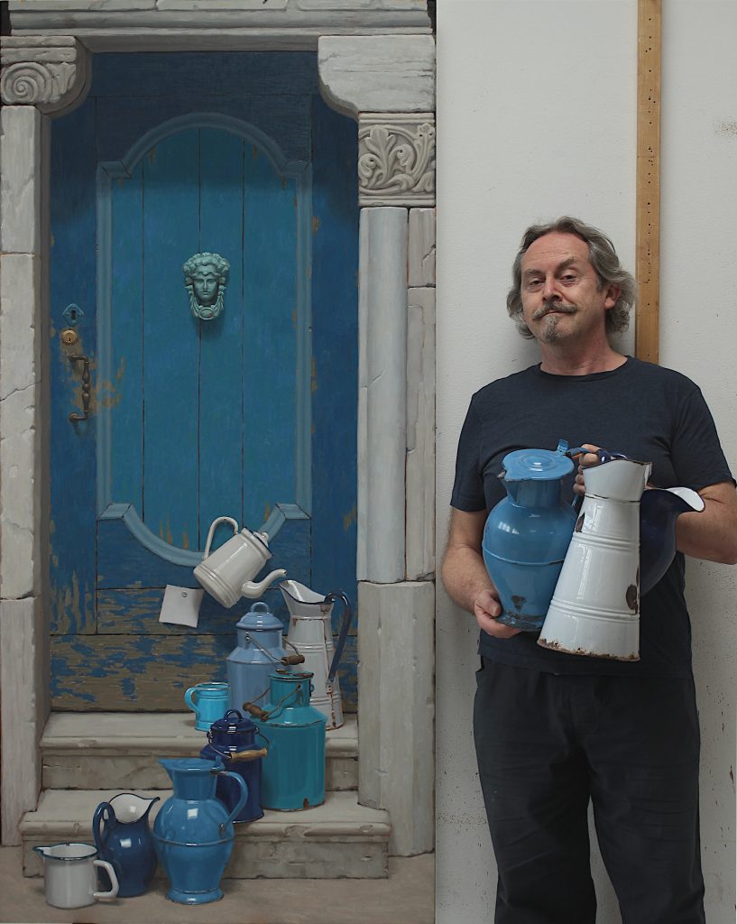 Una porta scheggiata, una caffettiera che reca i segni del tempo , o una brocca di latta smaltata: le opere di Quaresima sono ambienti, scorci, teatrini, rappresentazioni dunque, in cui l’uomo, pur essendo una presenza costante nell’inquadratura, è invisibile, assente, come se fosse appena uscito.