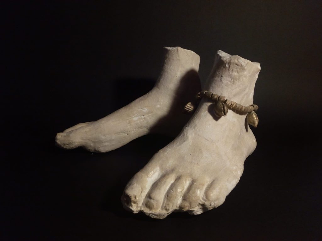 Il Buio è solo l’ombra della luce è il titolo della mostra di Giulio Delvè a cura di Valentina Rippa allestito in una speciale esposizione diffusa nella Quadreria del Pio Monte della Misericordia a Napoli. Un lavoro che si ispira al dipinto del Caravaggio Le Sette Opere di Misericordia che si muove fra arte e ricerca sociale, e che ripropone in scultura parti del corpo ornati di gioielli luminosi.