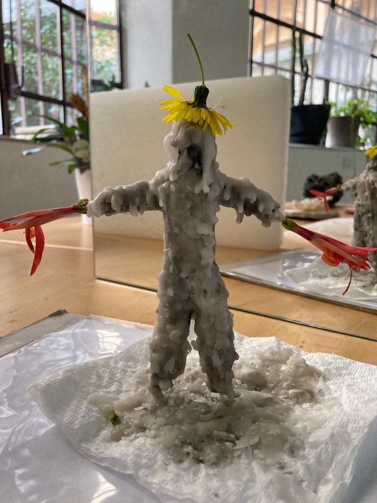 La scelta di esporre le opere per un solo giorno esprime il significato della mostra attraverso un’alternanza di opere in cera, che andranno lentamente a spegnersi nel corso dell’inaugurazione, e altri lavori realizzati dagli artisti con tecniche miste ispirandosi al mondo fisico e organico, alla botanica, alla collettività, alla figura umana, al regno animale. (Valentina Rippa)