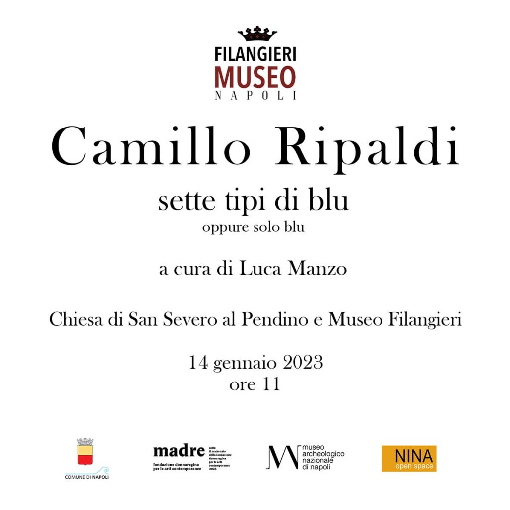 Sabato 14 gennaio alle ore 11.00 aprirà al pubblico la personale di Camillo Ripaldi, dal titolo “SETTE TIPI DI BLU oppure solo blu”, a cura di Luca Manzo.