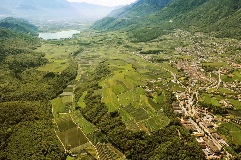 Le radici delle vecchie viti di Lagrein scendono in profondità nei pendii che circondano il lago di Caldaro, dove si trovano suoli calcareo-argillosi ben drenati e caldi, e riescono a valorizzare tutto il potenziale del terroir. Su questi pendii le viti godono di un microclima particolarmente favorevole, con temperature miti grazie alla protezione delle montagne, tante ore di sole e un’eccellente escursione termica giorno-notte, fattori importanti per una maturazione zuccherina e aromatica a regola d’arte – appunto.