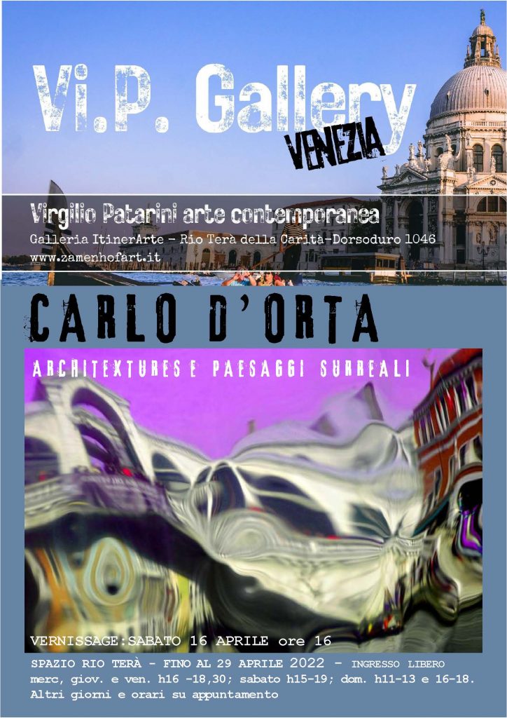 Entra nel vivo sabato 16 aprile 2022 la stagione della Vi.P. Gallery Venezia in Rio Terà della Carità – Dorsoduro 1046 (accanto alle Gallerie dell’Accademia) con una doppia inaugurazione, dalle h16 alle h18: nei due spazi attigui che compongono la galleria sarà presentata la mostra di pittura del giovane artista di origini bielorusse Yaroslav Gamolko intitolata “Pop Revolution” (una dozzina di opere d’ispirazione pop), nella Sala Campiello, e la mostra del fotografo romano Carlo D’Orta intitolata “Architextures e paesaggi surreali”, che vede in esposizione una carrellata di oltre venti foto di medie e grandi dimensioni dedicate a Venezia e ad altre città, tra geometrie e visioni surrealiste. Seguirà rinfresco.