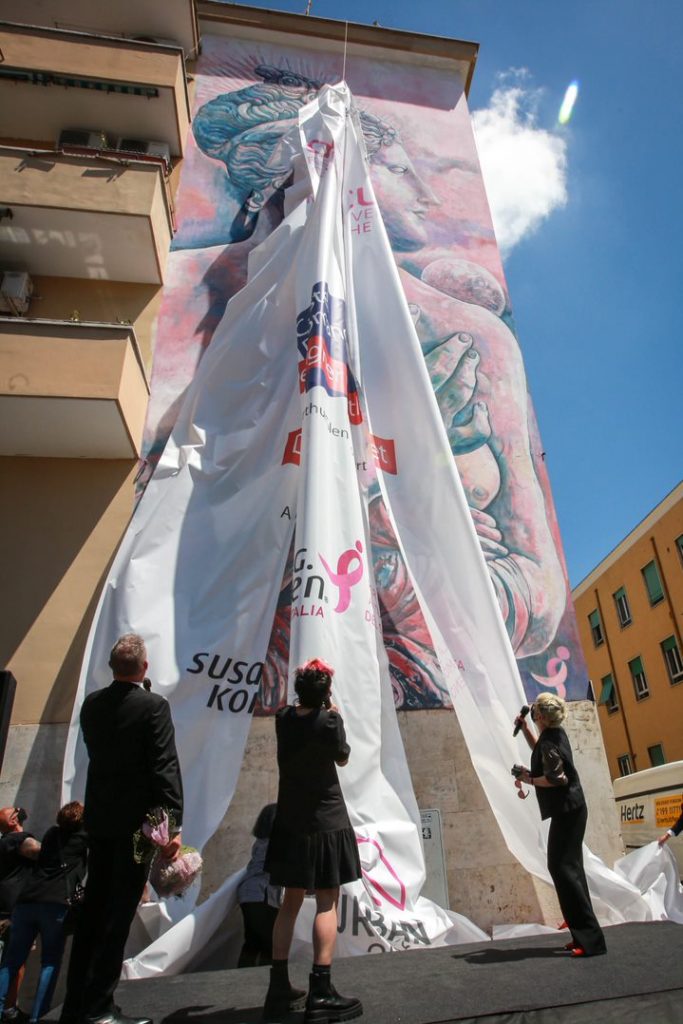 Ogni donna è una Venere, e deve amare prima di tutto sé stessa. L’ecomurales del noto street artist peruviano Carlos Atoche – la sua opera più grande nella Capitale – è stato svelato oggi a Largo delle Sette Chiese, nel cuore del quartiere Garbatella, è dedicato alla consapevolezza del proprio corpo e alla cura di sé, ed è soprattutto un invito alla prevenzione per cui Susan G. Komen Italia lavora senza sosta da oltre vent’anni.