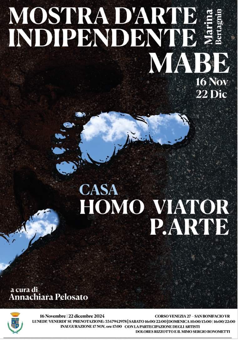 Dal 16 novembre al 22 dicembre 2024 lo spazio S.A.L.E di San Bonifacio ospita la mostra dell’artista Marina MABE Bertagnin intitolata Casa Homo Viator P.arte. Il progetto espositivo curato da Annachiara Pelosato si focalizza sul tema del viaggio e sul valore che esso può avere per la nostra vita.